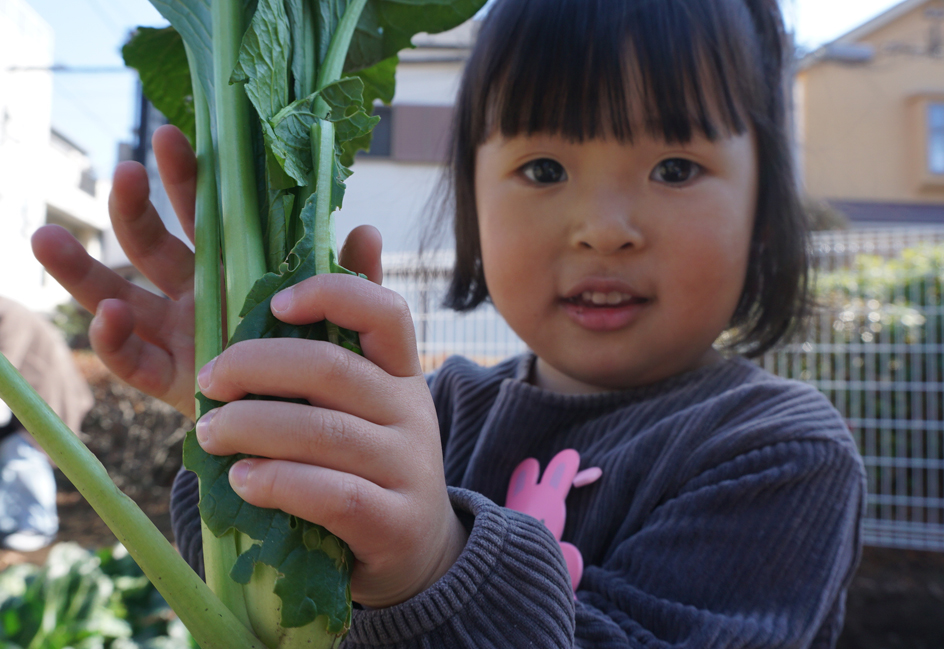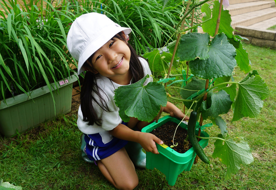 動植物と関わりながら、命や自然を見つめる心と好奇心を育てます。食育も取り入れます。