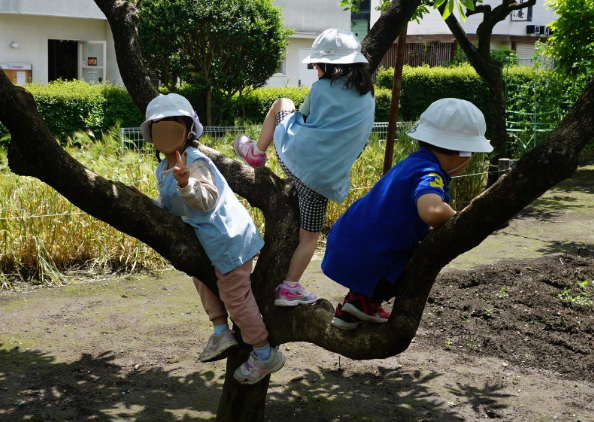 園児は自由に遊びを選び、展開することで自主性や表現力を育んでいます。また異年齢のこどもと遊ぶことで、お互いに学び合い、協調性や思いやりの心が育まれます。