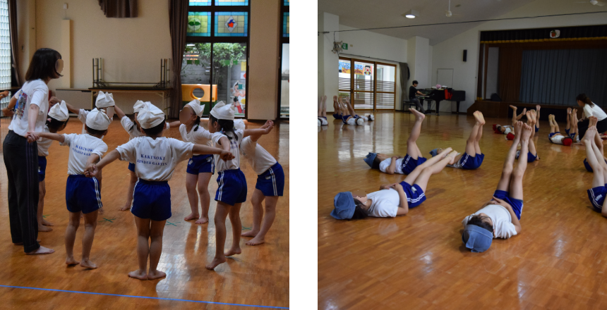 自分の身体機能に関心を持ち、運動を行うために必要な基礎感覚を育てることを中心に、体の動かし方を身につけることを目指します。