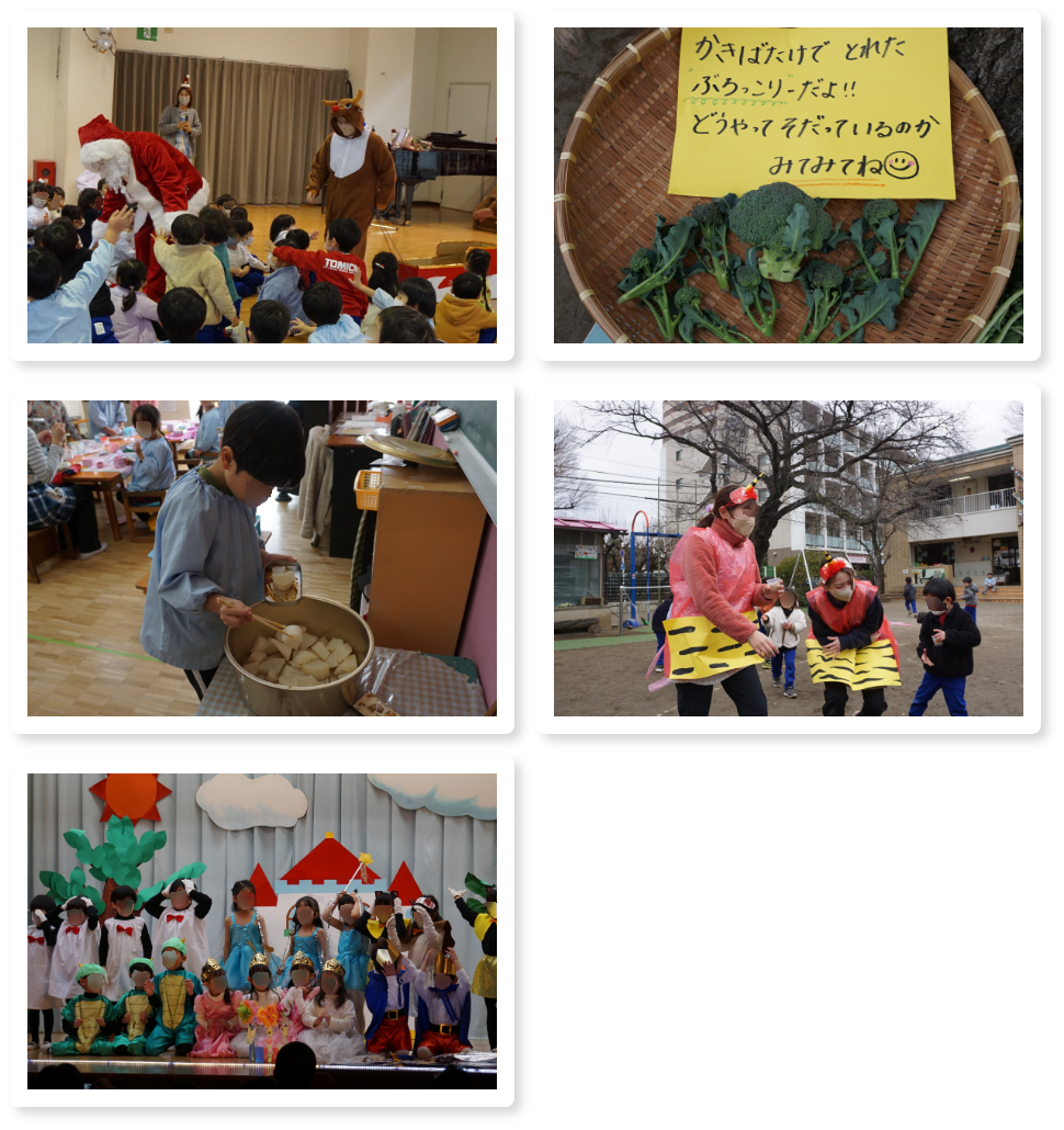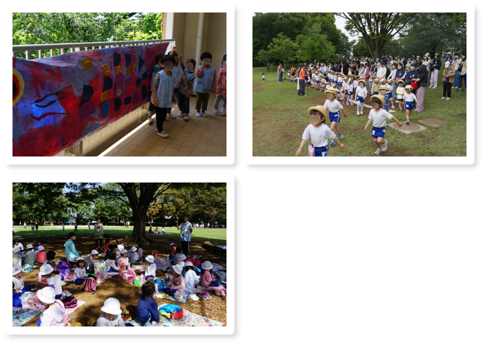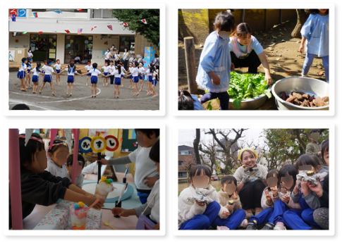 年間行事は園生活での楽しみであり、大きな学びの機会です。多くの自然に触れ合える環境のもと、四季折々にあったイベントを開催し、子どもたちの感性や好奇心、観察力や創造力を刺激します。