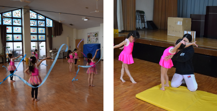 フープ、ボール、リボンを使って楽しく踊ります!美しく、強く、しなやかな身体で。月曜日にレッスンを行つています。