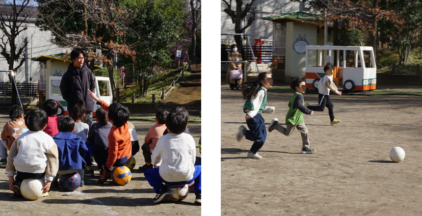 全国優勝の実績を持ち、Jリーガー11名を輩出。元フツトサル日本代表キャプテン市原選手は、かきの木幼稚園の卒園児です。一緒に楽しく練習しょう。(年中児・年長児のみ)