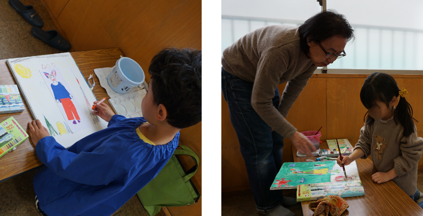 ドイツの美術教育に基づいた30年の指導実積による、ていねいな指導を行っています。楽しく絵を描きながら感性や知性をのばします。