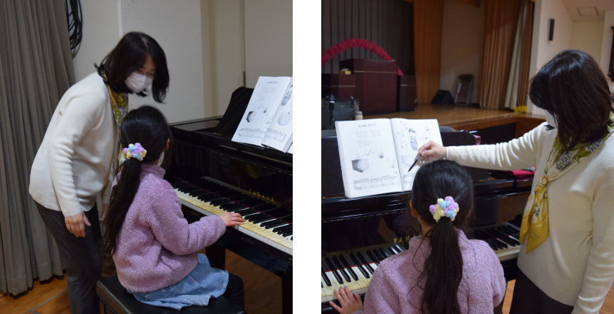 講師オリジナルの教本で、初めての音符をゆっくり身につけます。歌うこと、聴くこと、書くことを通してピアノが大好きになってくれたらうれしいです。